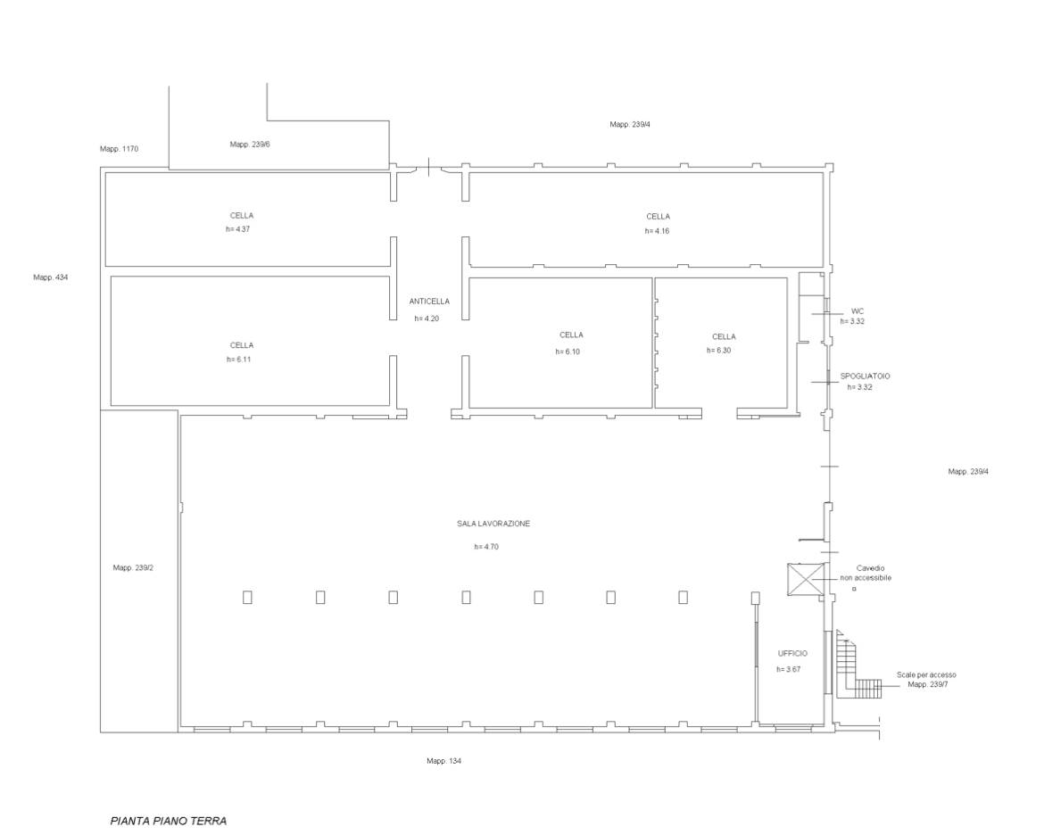 Laboratorio composto da un ampio edificio contenente un magazzino-frigorifero per frutta-ortaggi e lavorazione, sovrastanti locali deposito e camere con servizi, area scoperta con magazzino- ripostiglio, il tutto sito nel centro abitato di Consandolo (Comune di Argenta) in via Provinciale.