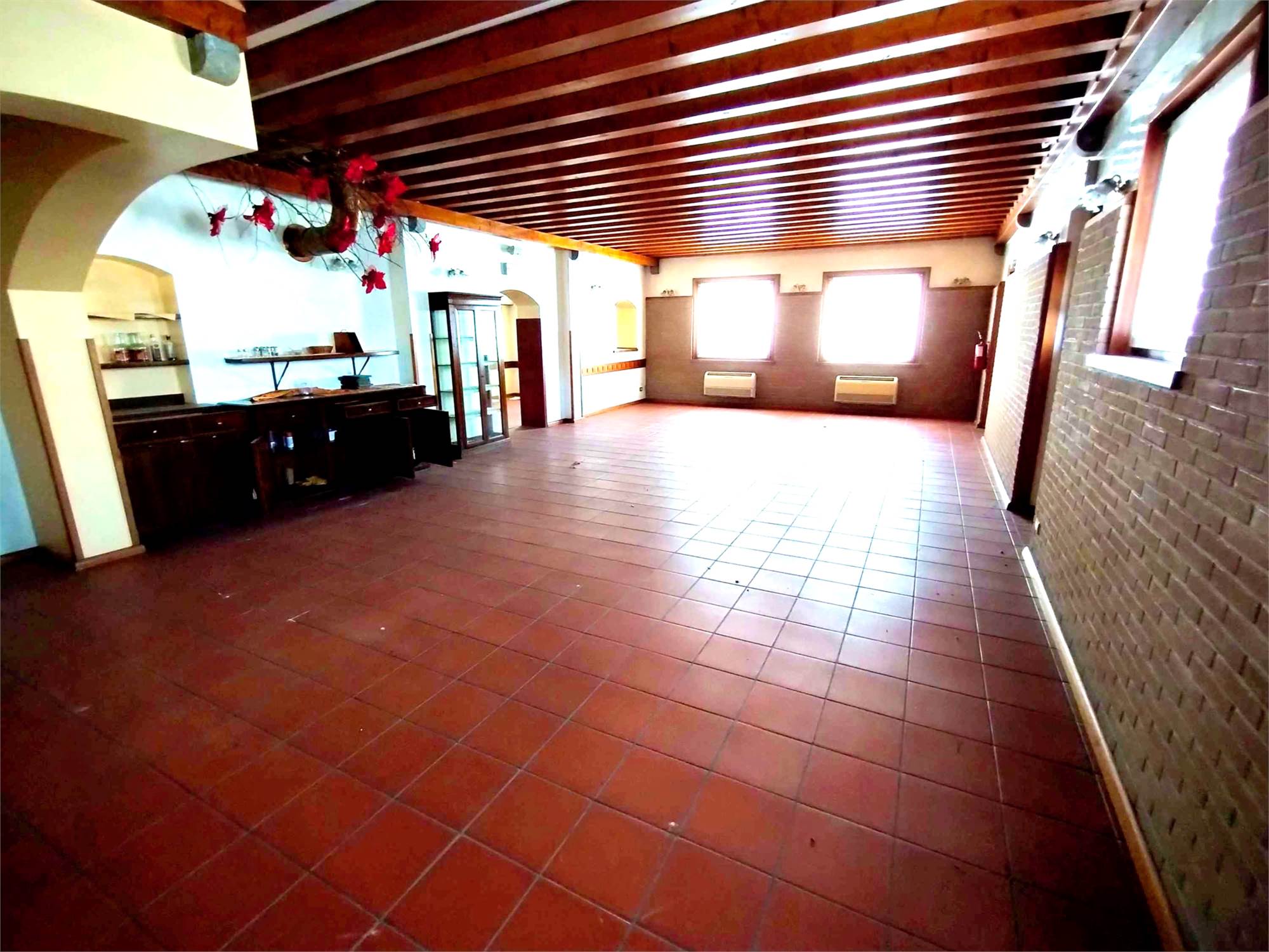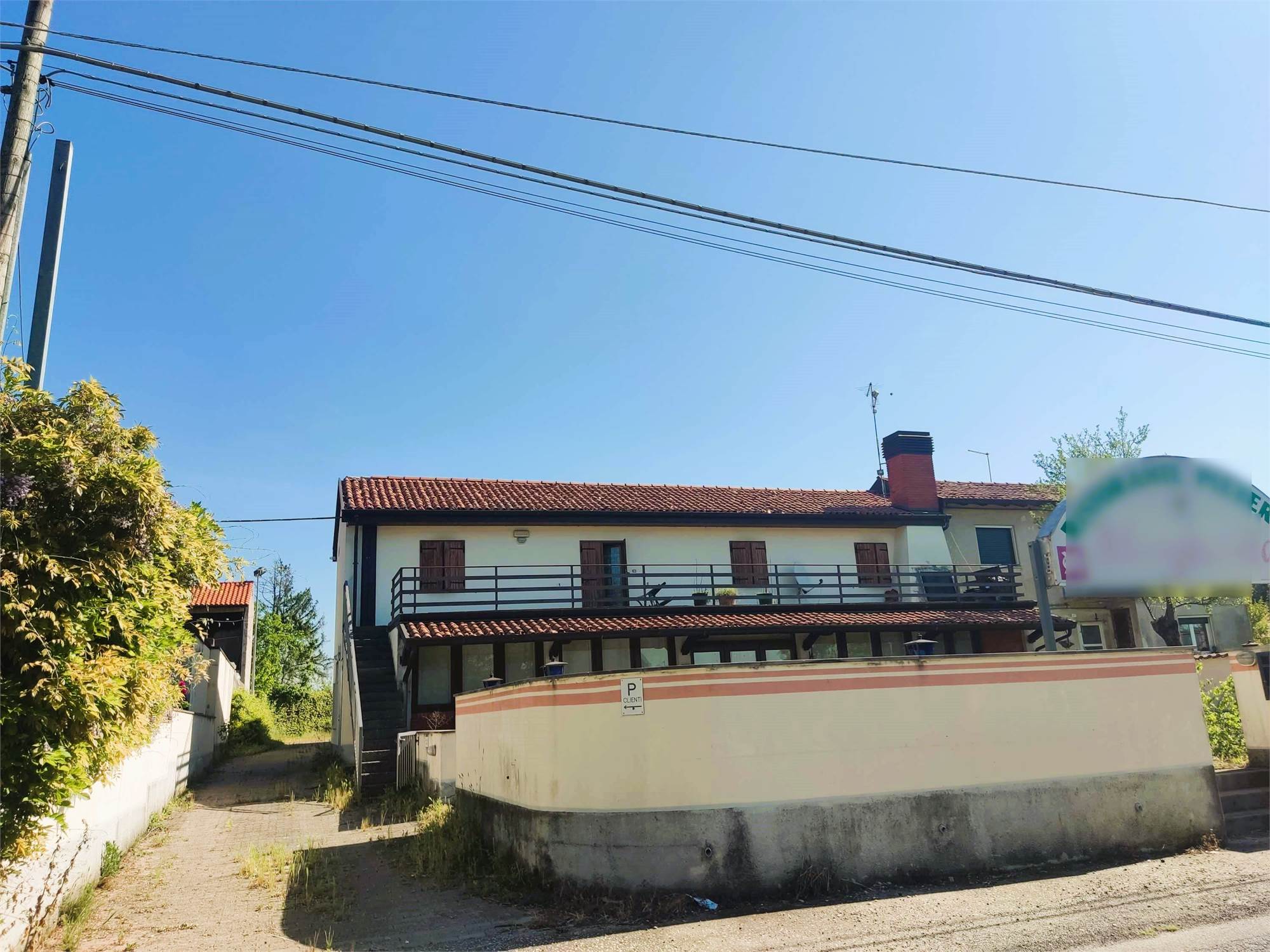 Ristorante/Pizzeria con appartamento situata a Pozzuolo del Friuli (UD), l'attività ristorativa è al piano terra con la reception, la cucina e l'ampia sala con tavoli e sedie, al primo piano troviamo un appartamento, il tutto inserito all'interno di un lotto di terreno privato.
