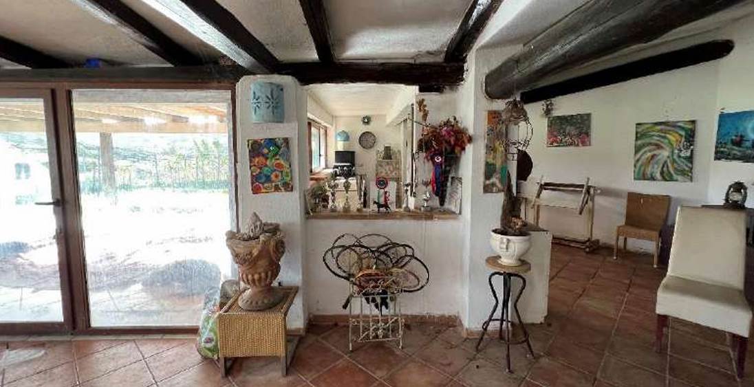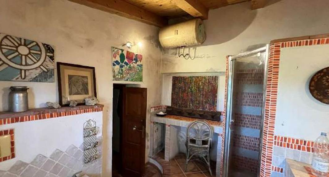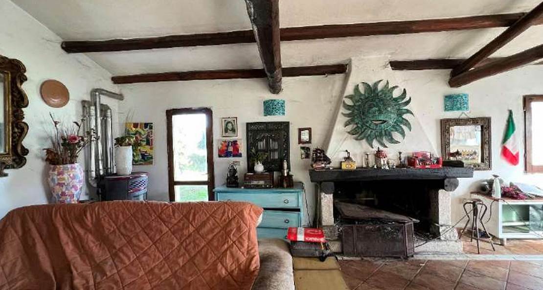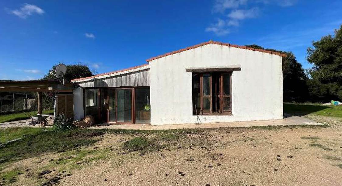 Casa con terreni agricoli situata a Santa Teresa Gallura (SS), al suo interno troviamo al piano terra: una zona giorno principale con caminetto che si attesta frontalmente su di un ulteriore ambiente destinato sempre a zona giorno con cucina a vista e caminetto. Dalla zona giorno principale si giunge, attraverso un corridoio, a due camere da letto di cui una dotata di caminetto e, tramite un disimpegno, ad un servizio igienico. Presenza di veranda coperta esterna in legno che si attesta sull’ambiente del soggiorno. I terreni ricadono in sottozona E2 – Zona Agricola normale, è presente un vigneto di circa 1,5 ettari. La superficie dell'abitazione è di 116mq mentre quella dei terreni è di 290.273,00 mq.