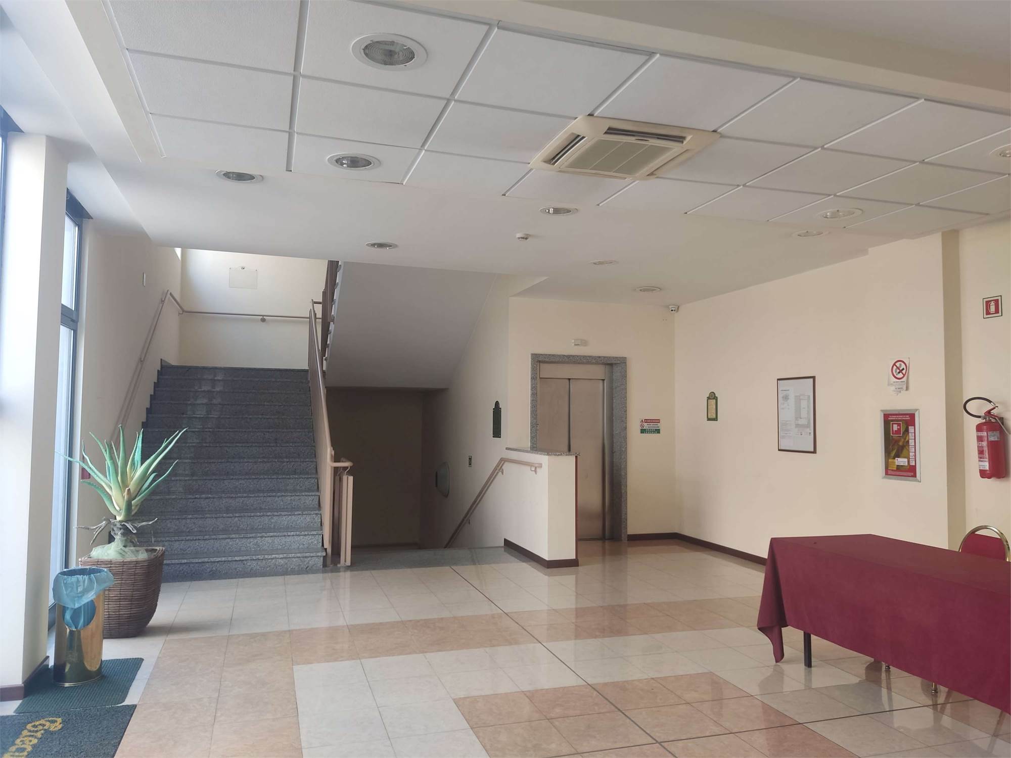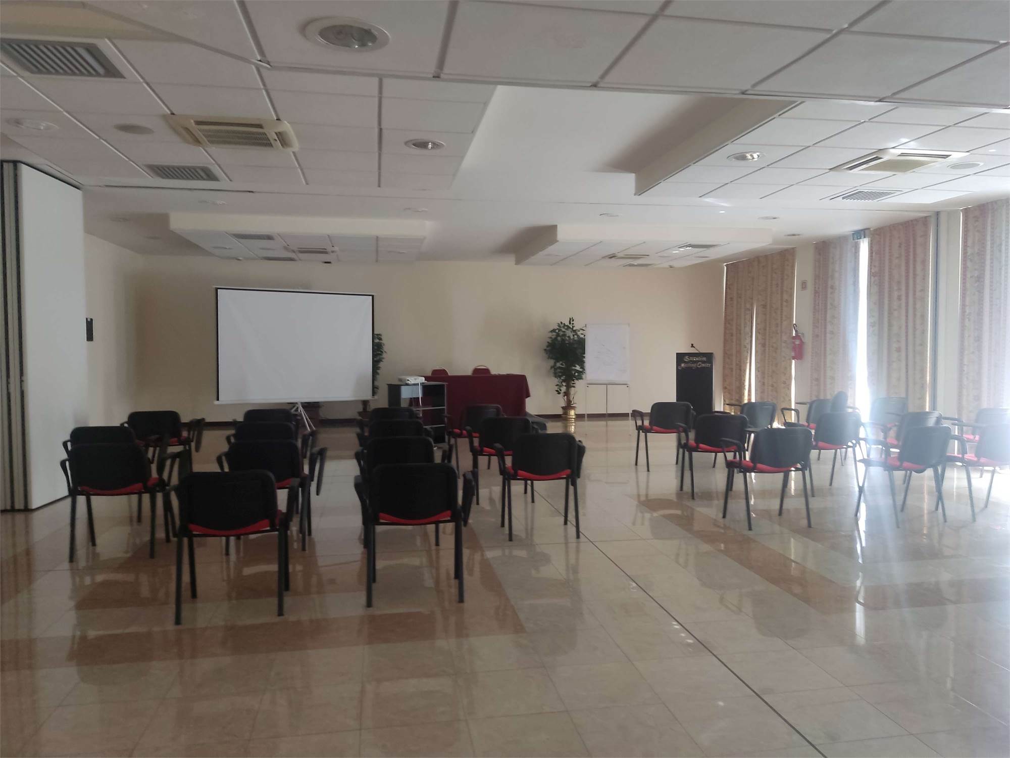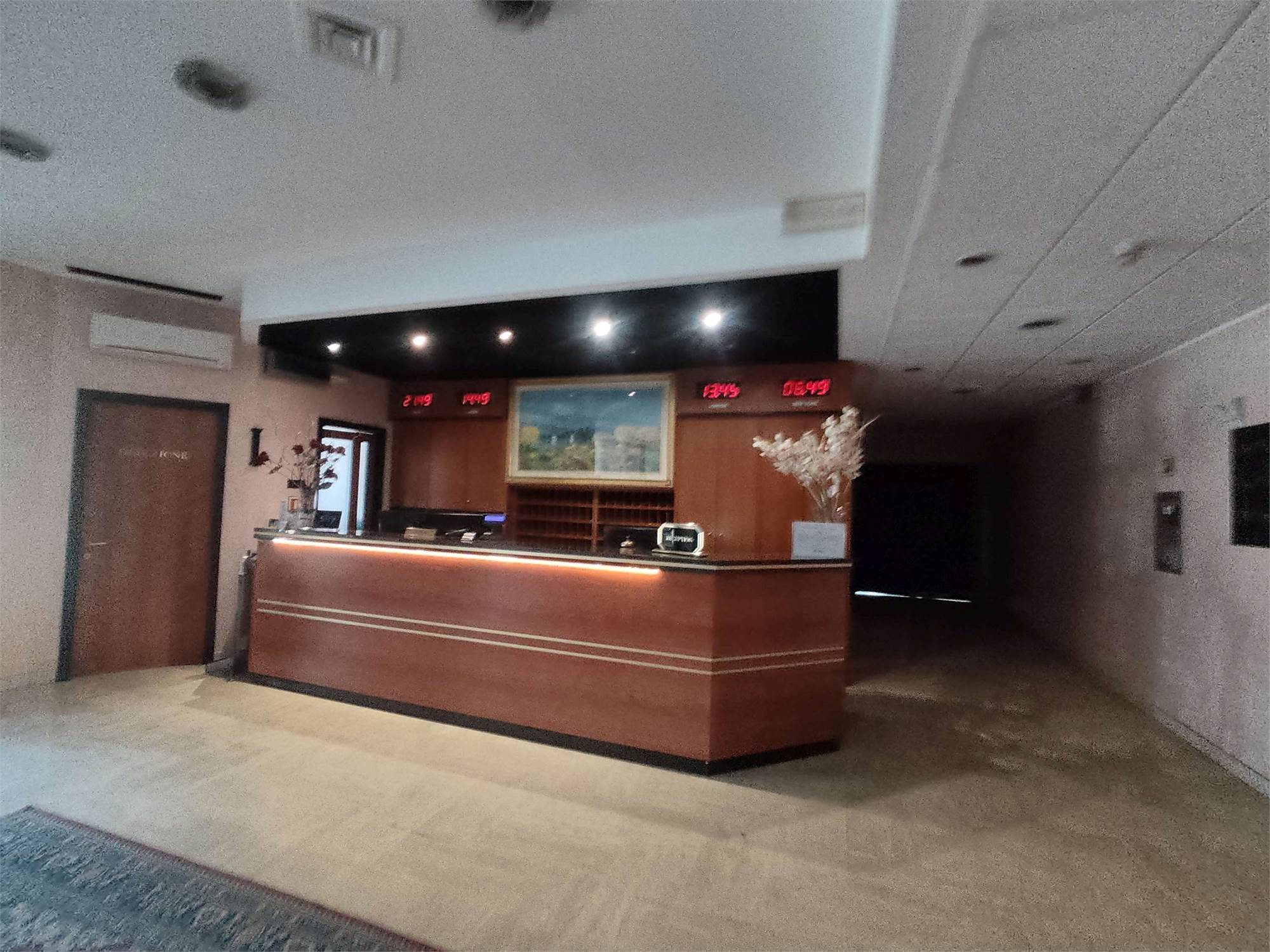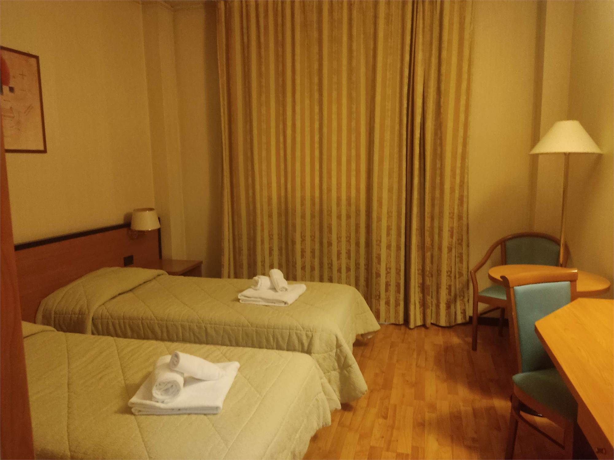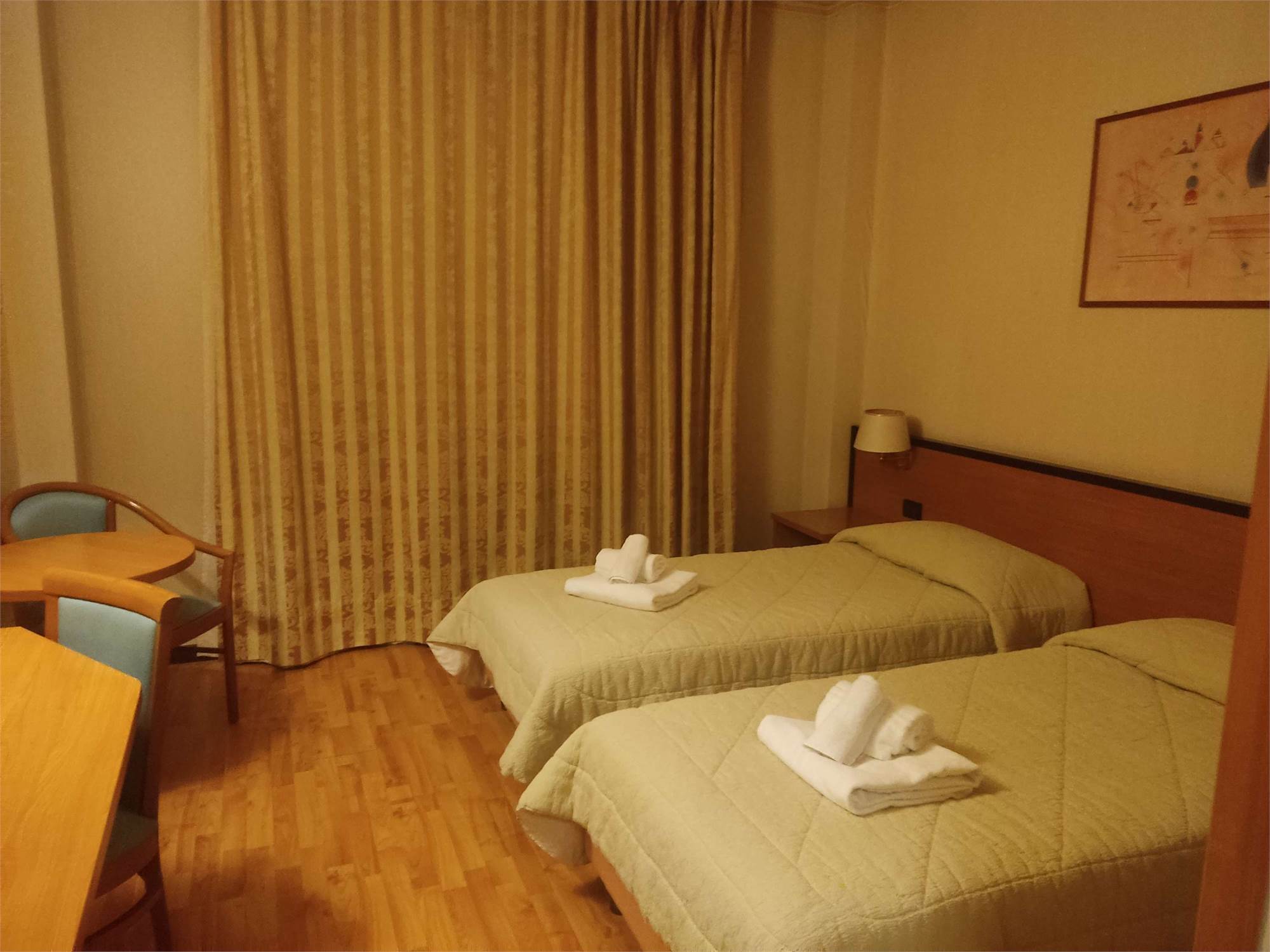 I due fabbricati sono accorpati fra loro, la struttura alberghiera ha una superficie di 3.866mq e si sviluppa su 4 piani diversi, internamente troviamo al piano interrato la centrale termica, più magazzini, una sala macchine, un ascensore, il locale in cui sono ubicati i contatori dell'energia elettrica, una centrale idrica e locali di deposito. Il piano terra contiene: una hall reception con ufficio, due sale riunioni, una zona ristorante, un bar, locali a servizio della gestione alberghiera (cucina con dispensa, ripostiglio con bagno, spogliatoi e servizi igienici), cinque camere idonee ad ospiti disabili dotate di bagno e terrazzo, ascensore e tre rampe di scale. Il primo, il secondo e il terzo piano hanno identica conformazione e ciascun piano contiene 24 camere (doppie oppure matrimoniali) con bagno (completo di doccia, lavabo, tazza wc e bidè), telefono, internet Wifi, televisore e frigo bar.