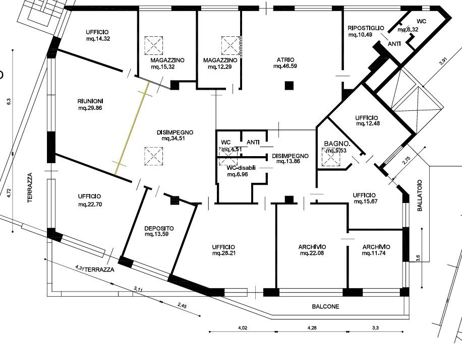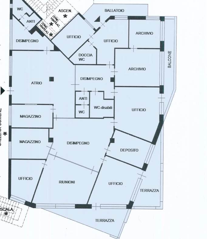 Ufficio situato a Bolzano (BZ), è collocato al terzo piano di un ampio edificio e ha una superficie di 389,00 mq. Internamente è composto da: un atrio di ingresso, 5 uffici singoli, una sala riunioni, 3 bagni di cui uno per disabili, 2 sale archivi, 2 magazzini, 2 terrazze, 1 balcone e 1 ballatoio.