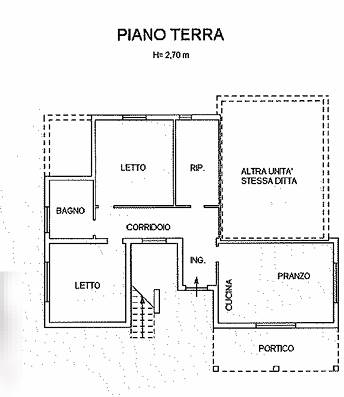 Casa composta da 2 appartamenti autonomi situata a Porto Viro (RO), il primo appartamento è al piano terra e dispone di un portico, un porcile e un pollaio, mentre il secondo appartamento si trova al primo piano e dispone di terrazzo, garage e un porcile. Retrostante la abitazione troviamo un magazzino con portico.