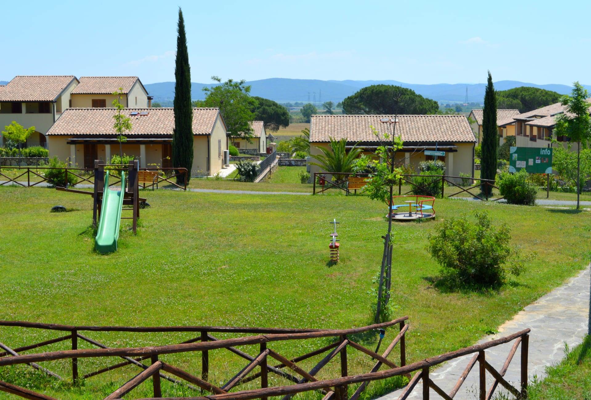 - Lago: cinque fabbricati indipendenti contenenti 12 bilocali al piano terra e 6 bilocali al piano primo.