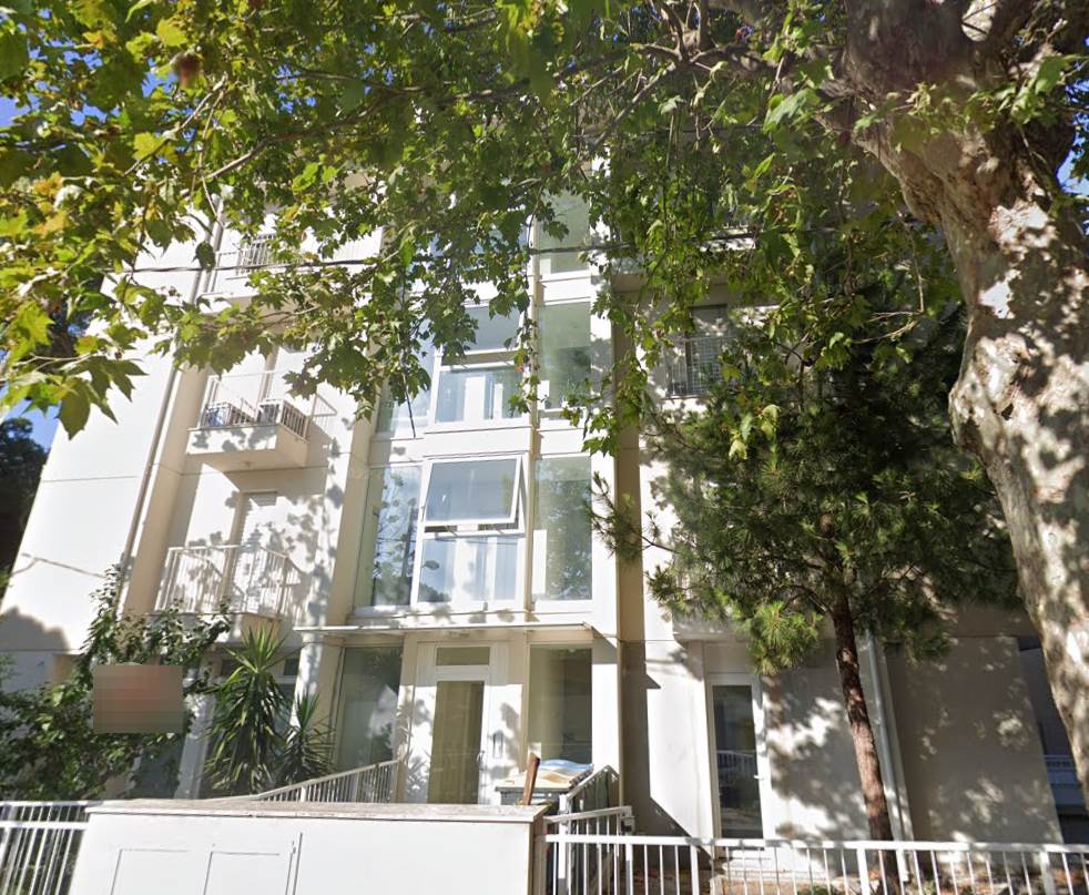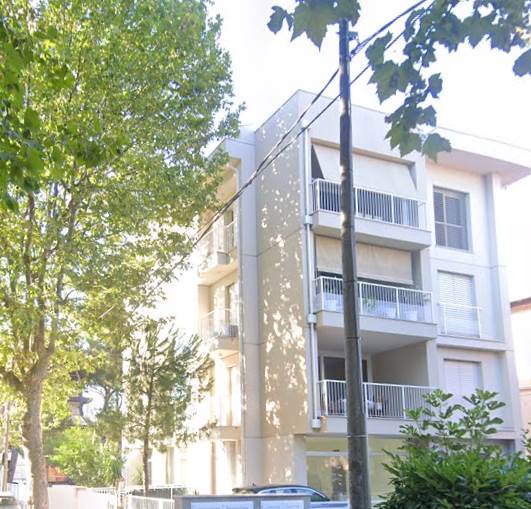Appartamento situato a Riccione (RN), è collocato al primo piano di un condominio posizionato sul fronte strada e all'interno si compone di: cucina, due ampi soggiorni, due camere da letto, due bagni, disimpegni, due balconcini, due ampie logge e un autorimessa interrata.