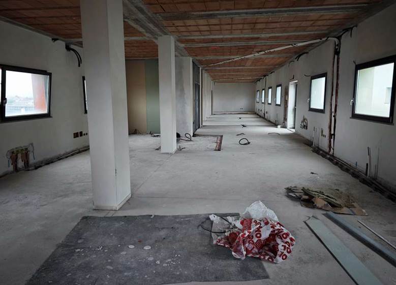 Ufficio situato a Rimini (RN), si presenta allo stato grezzo e sviluppa una metratura di 255,00mq più un ballatoio di 23,00mq.