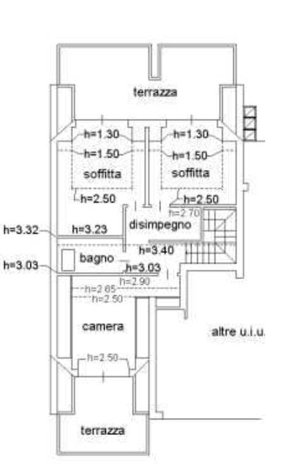 Appartamento su due livelli con annessa autorimessa sito a Rubano (PD) in via Emilia, composto al primo piano da un ingresso, soggiorno e cucina entrambi con accesso alla terrazza, un bagno, disimpegno, una camera da letto con terrazza; al piano secondo da due locali soffitta con accesso su unico terrazzo, disimpegno, un bagno, una camera con terrazza.