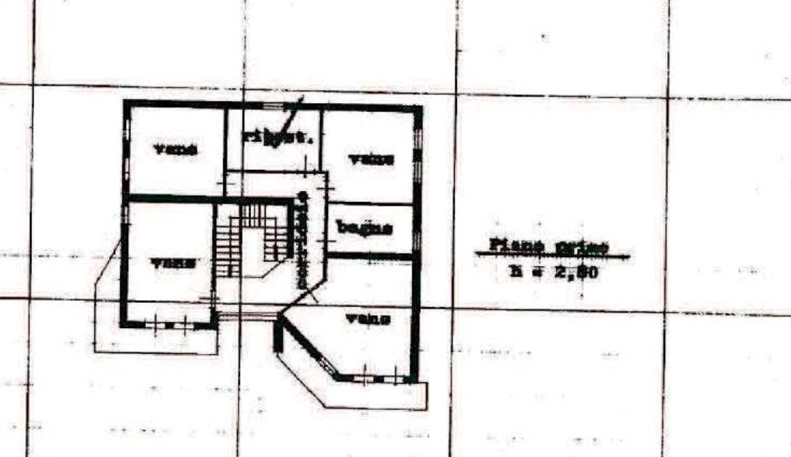 piano superiore si sviluppa la zona notte costituita da quattro camere doppie, un ampio bagno ed un lungo corridoio; al piano intermedio si trovano un disbrigo, il garage ed un bagno.