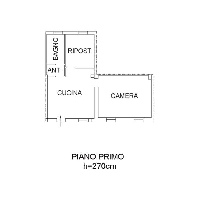 Appartamento al piano primo con annessa autorimessa facente parte di un condominio sito nel Comune di Istrana (TV) in via Santo Stefano, composto da una cucina, camera, antibagno, bagno e ripostiglio al piano primo; pertinenziale garage al piano primo sottostrada.