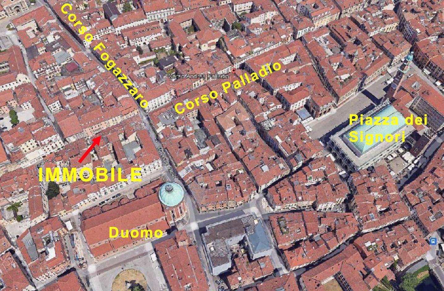 Appartamento al piano terzo con annesso posto auto coperto in palazzo storico su quattro piani fuori terra ed uno interrato, denominato “Palazzo Thiene” situato a Vicenza (VI) in Galleria del Pozzo Rosso. L’accesso all’appartamento avviene da vano scala comune a cui si giunge dall’ingresso posto all’interno della galleria commerciale denominata “Galleria del Pozzo Rosso”, la grande scalinata del vano scala è dotata di ascensore che collega tutti i piani del palazzo. L’abitazione risulta articolata da un ingresso, soggiorno ed angolo cottura in un unico vano e bagno cieco.