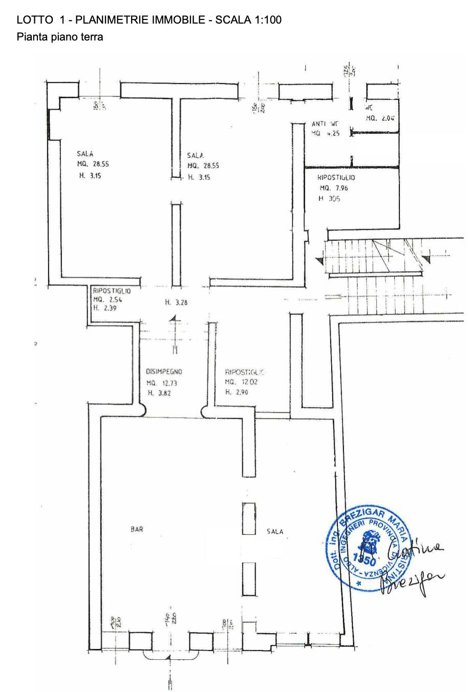 Unità commerciale al piano terra situata a Schio (VI) in via Carducci, adibita a bar distribuito in bar e sala, disimpegno e ripostiglio centrali, due sale, ripostiglio e servizi igienici; al piano interra da una cantina.
