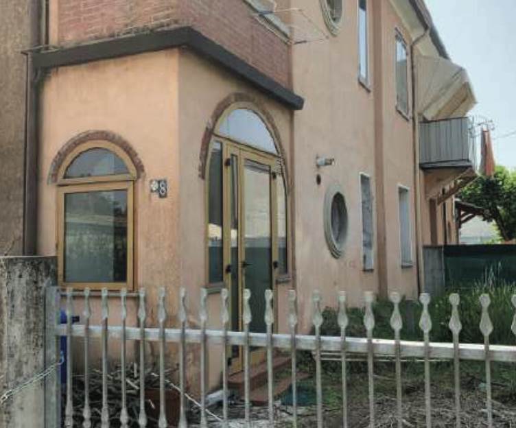 Appartamento al piano terra situato a Villorba (TV) in via Giulio Pastore, composto da un ingresso, una cucina, salotto, sbratta, corridoio, due camere da letto e bagno al piano terra; pertinenziali magazzino al piano terra su corpo di fabbrica staccato e area scoperta di complessivi 172 metri quadri catastali.