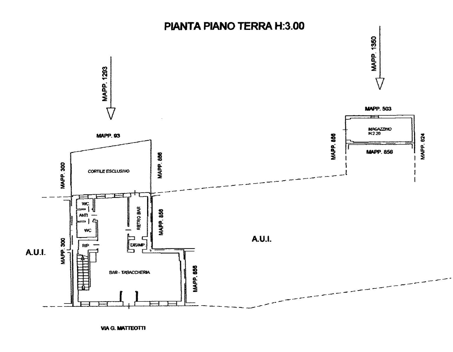 Locale commerciale su due piani ad uso bar-tabaccheria con cortile esclusivo oltre a locale magazzino e locale soffitta situato a Borgo Veneto (TV), località Megliadino San Fidenzio in via G. Matteotti.