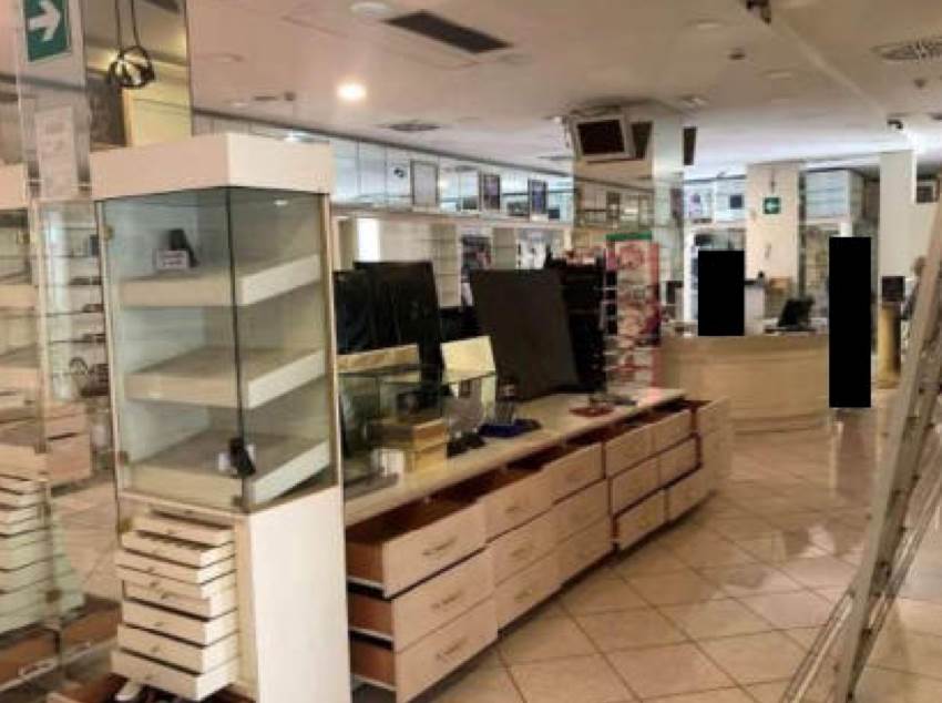 Negozio adibito a profumeria con box auto situato ad Abano Terme (PD) in piazza Dondi dell'Orologio, si compone al piano terra di un ampio vano dedicato alla vendita, un gruppo di servizi igienici con anti e un vano tecnico con accesso dall'esterno e al piano interrato da un vano adibito a magazzino ed esposizione con ufficio e un locale per i test dei prodotti, due ripostigli sottoscala, un locale contatori ed un corridoio di collegamento con il box auto.