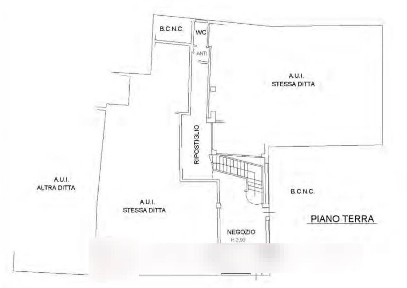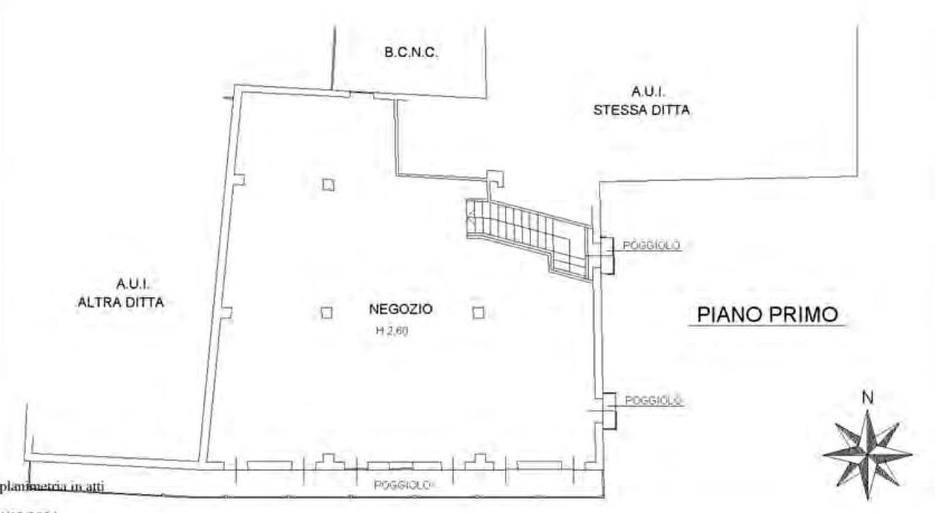 Negozio disposto su due piani con ingresso direttamente da Piazza Umberto I a Camisano Vicentino (VI), composto al piano terra da un vano adibito a locale di vendita, una zona secondaria adibita a ripostiglio; al piano primo zona adibita a magazzino e servizi igienici.