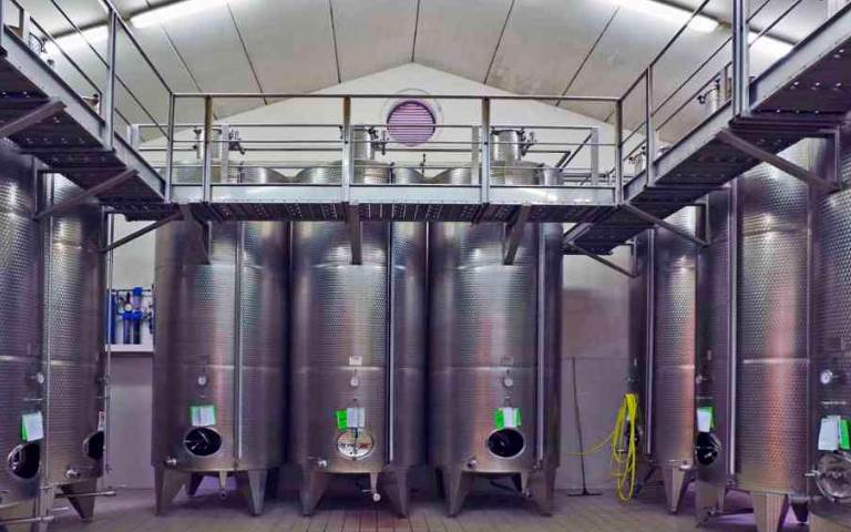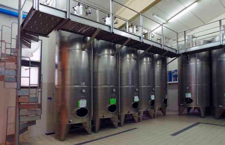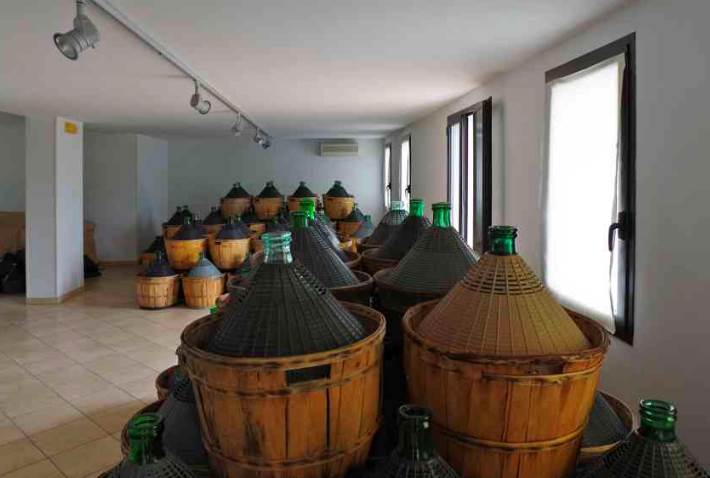 b) Una cantina di vinificazione con portico e ricovero attrezzi;