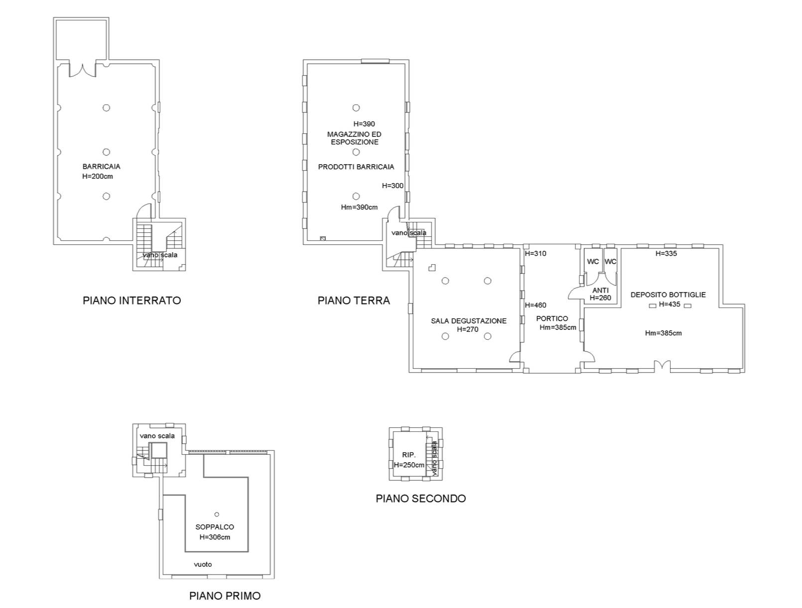 a) Fabbricato con funzioni plurime composto da barricaia, sala degustazione, magazzino, sala degustazione, sala esposizione, deposito, portico e alloggio del custode;