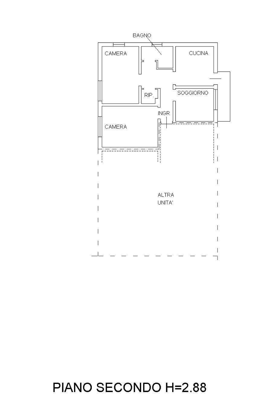 Appartamento al piano secondo con annessa autorimessa al piano terra facente parte di un condominio a quattro piani fuori terra situato a Zero Branco (TV) in via G. Mazzini, composto da un ingresso, un soggiorno-cucina, un bagno, due camere da letto ed un ripostiglio.