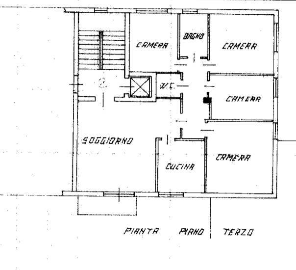 una cucina abitabile, disimpegno, quattro camere da letto, due bagni ed un poggiolo accessibile direttamente dal soggiorno.