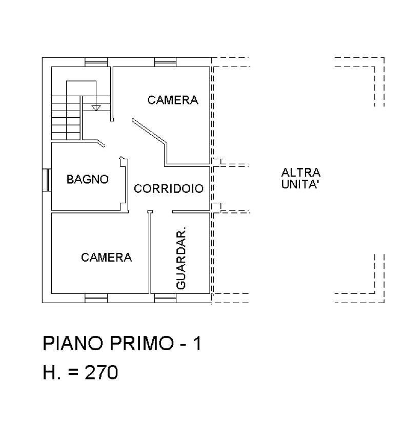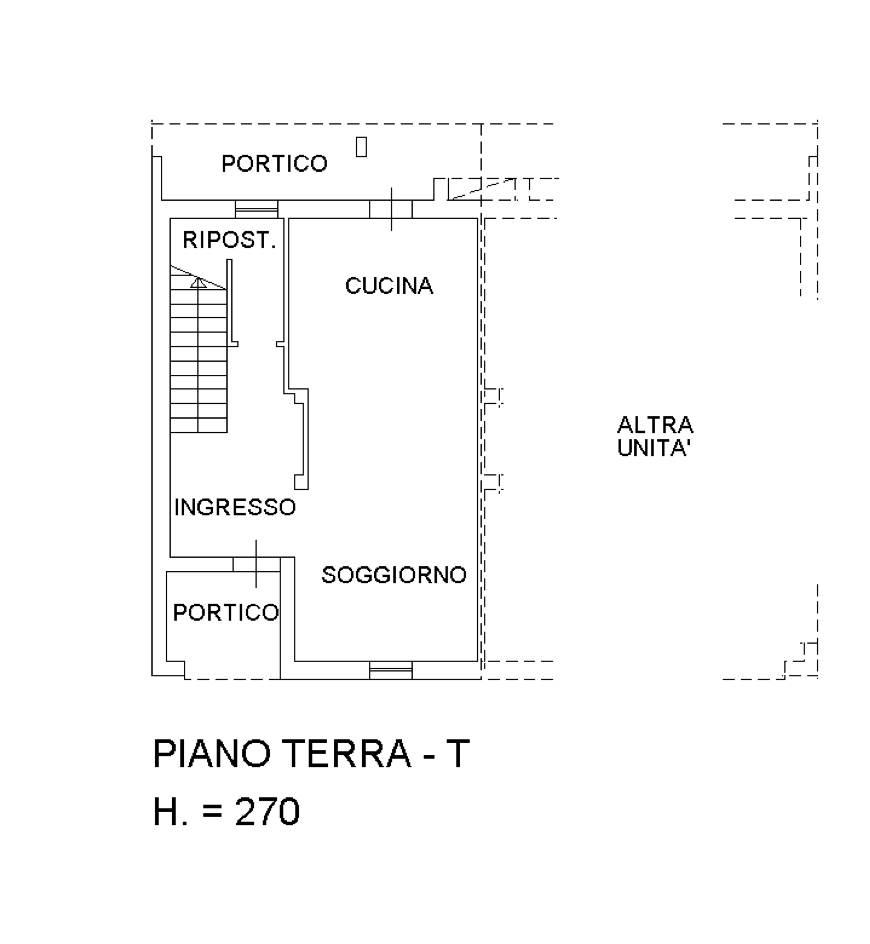 Unità immobiliare assimilabile a casa a schiera con portico al piano terra e primo situato a Paese (TV) in via Boschi, composto al piano terra da due portici, ingresso, una cucina, soggiorno, ripostiglio e scala; al piano primo da due camere da letto, un guardaroba ed un bagno. Il lotto è stato oggetto di una suddivisione in due distinte unità immobiliari, apparentemente motivata da esigenze locative.