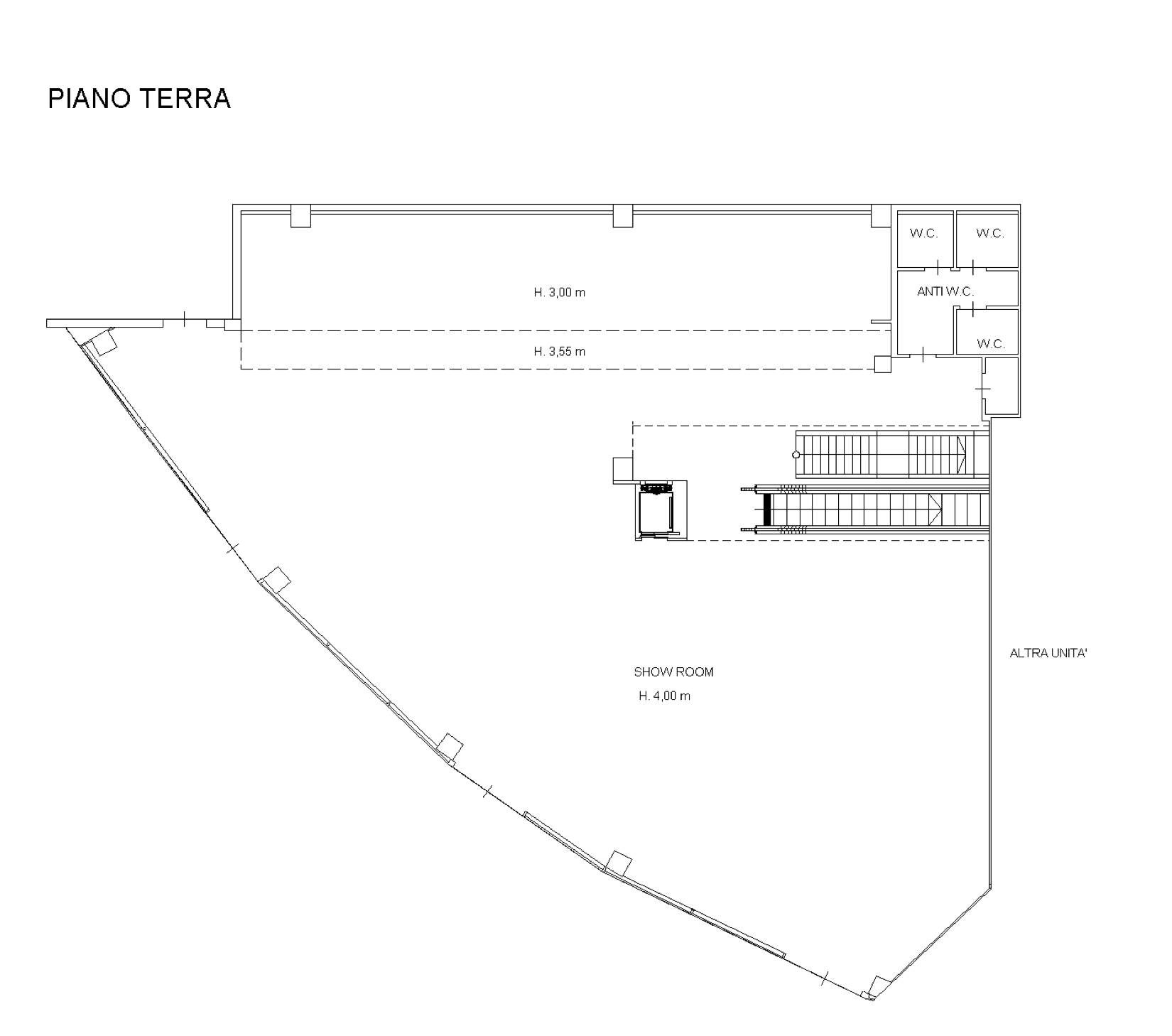 Locale commerciale su due piani con magazzino situato a Monselice (PD) in via Silvio Travaglia, per una superficie commerciale complessiva di 1.352 metri quadri.