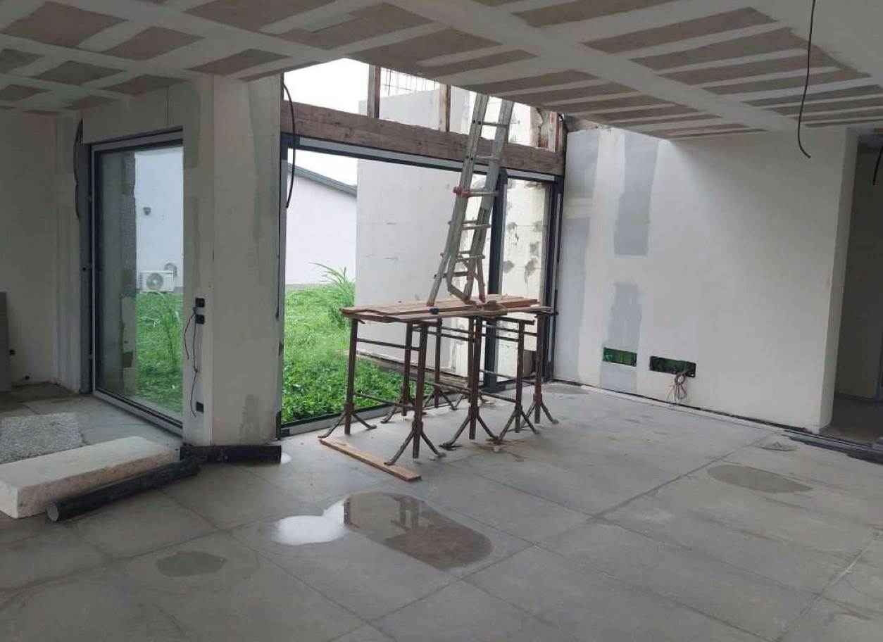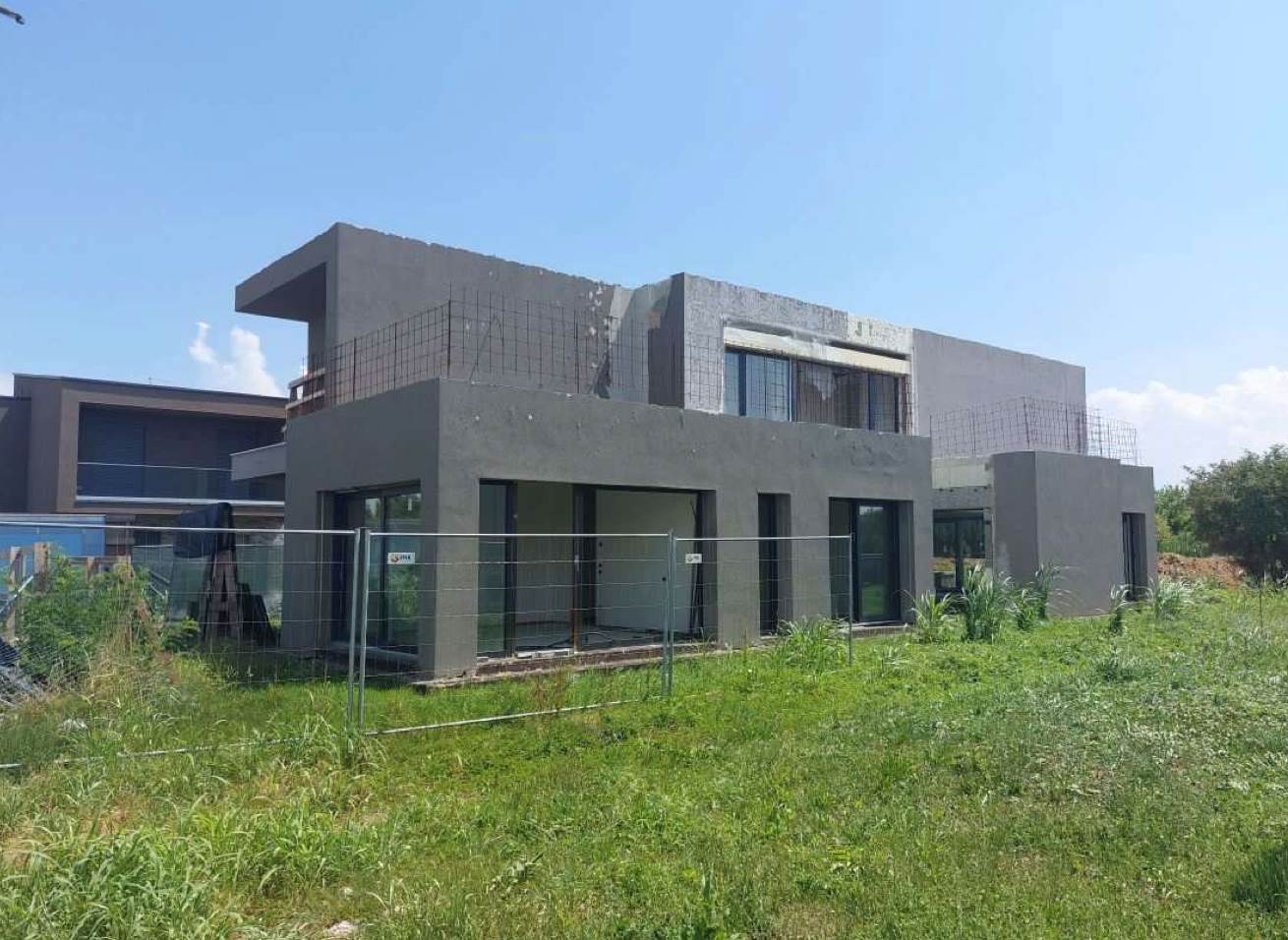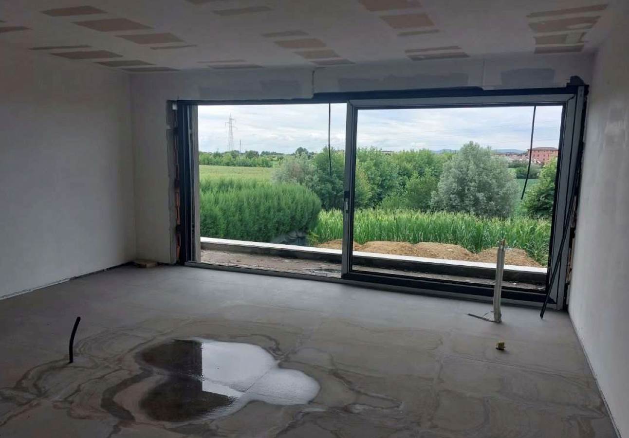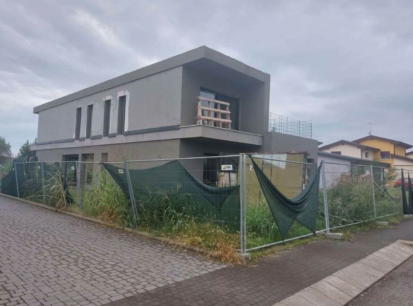 Edificio unifamiliare su due livelli, attualmente allo stato grezzo avanzato, con giardino di proprietà esclusiva situato a Monticello Conte Otto (VI) in via Girolamo Selmo. Al piano terra si trovano una ampia zona open-space ad uso soggiorno e cucina-pranzo, un disimpegno, un bagno, uno studio, una “stanza”, il locale ad uso centrale termica ed il garage; al piano primo con il collegamento interno da realizzarsi con scala ad una rampa, si trovano tre camere da letto, due bagni e due terrazze.