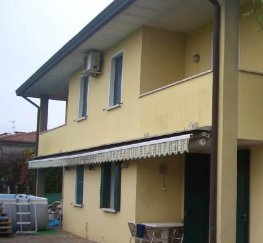 Casa singola con annessa area cortiliva situata a Vescovana (PD) in via Don Giuseppe Breda, composta al piano seminterrato-terra da garage-locale di sgombero, disimpegno, due locali sgombero, bagno, corridoio-centrale termica, vano scala e due portici; al piano rialzato-primo da un ingresso, un soggiorno, una cucina, disimpegno, due camere da letto, bagno, ripostiglio, due poggioli ed un portico.