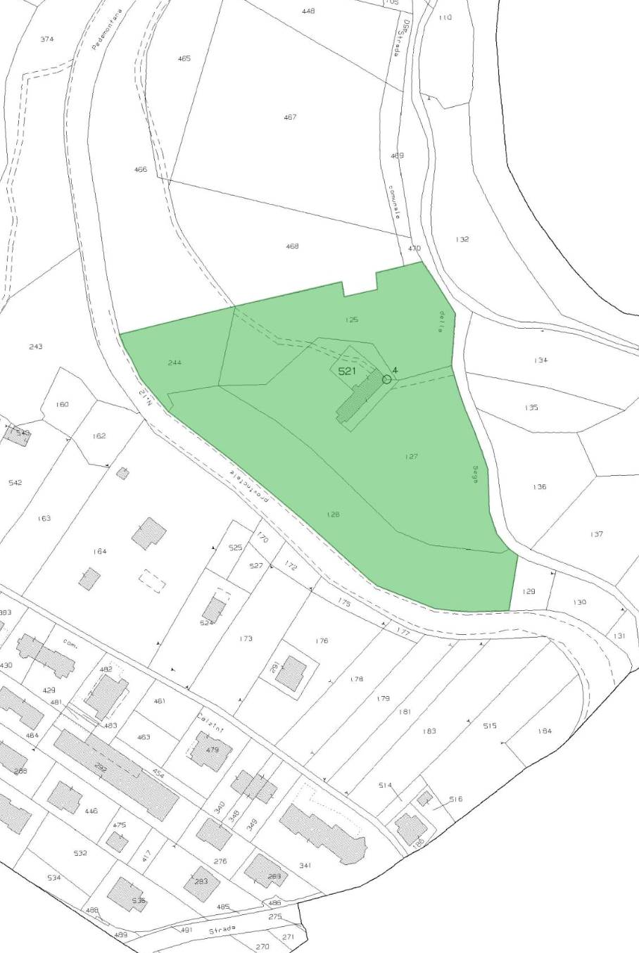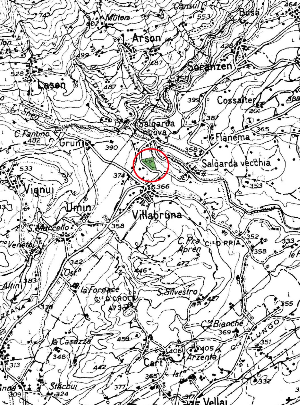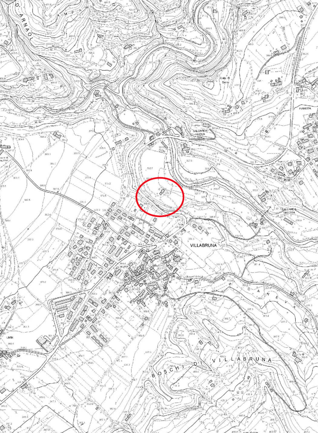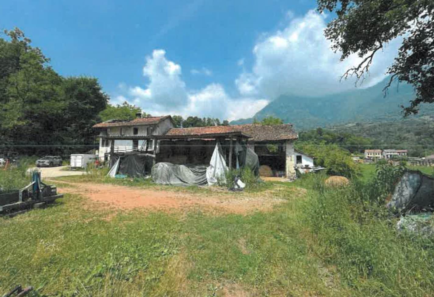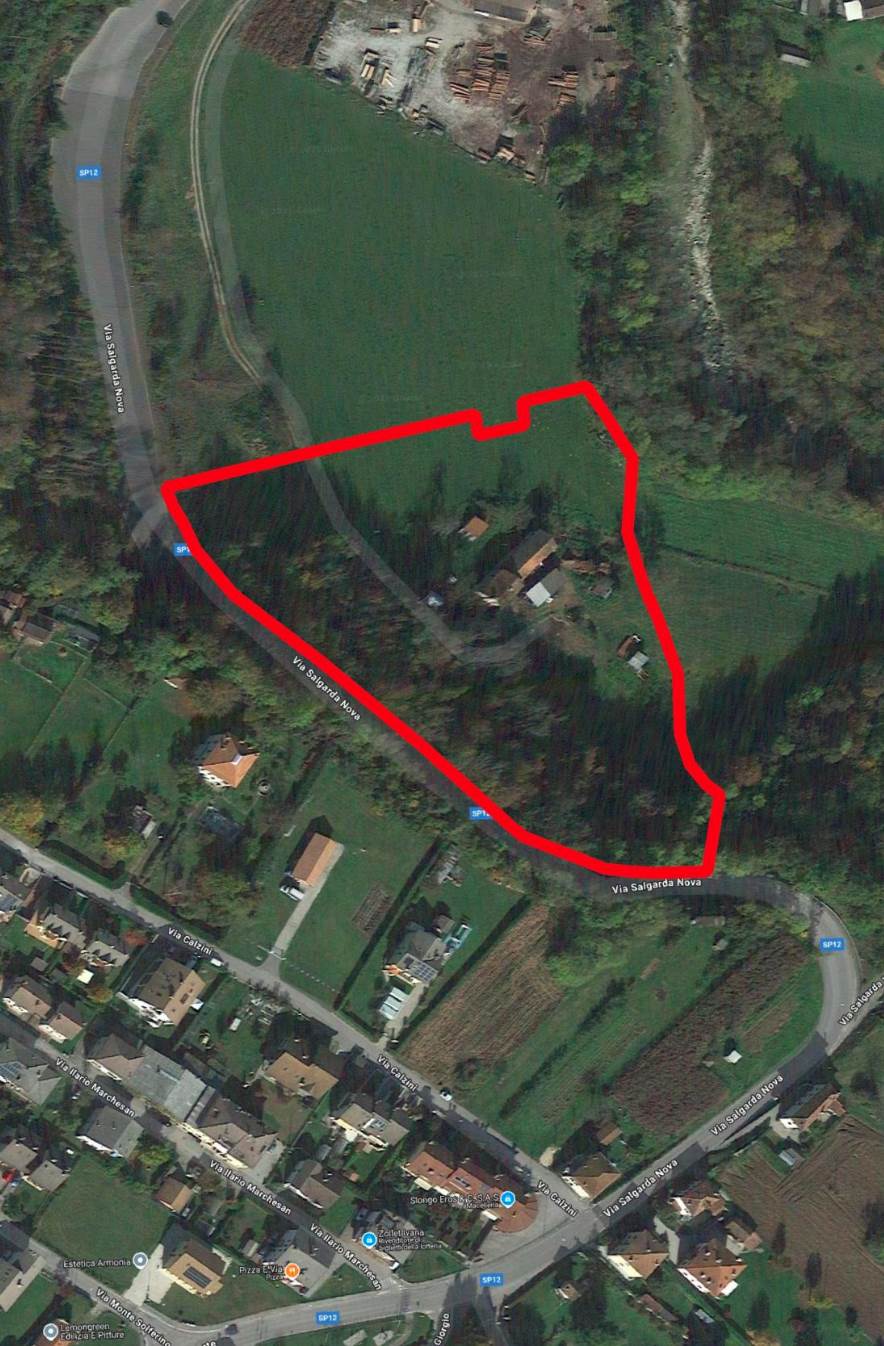 Fabbricati insistenti su terreni agricoli in un corpo fondiario di forma irregolare con sviluppo prevalente sud-ovest nord-est situati a Feltre (BL), frazione Villabruna in via Salgarda Nuova. L’ex abitazione è collabente e si sviluppa su tre piani fuori terra ed ai piani vi si accedeva con vano scale interno. La struttura agricolo-produttiva è fatiscente e si sviluppa su due piani fuori terra.