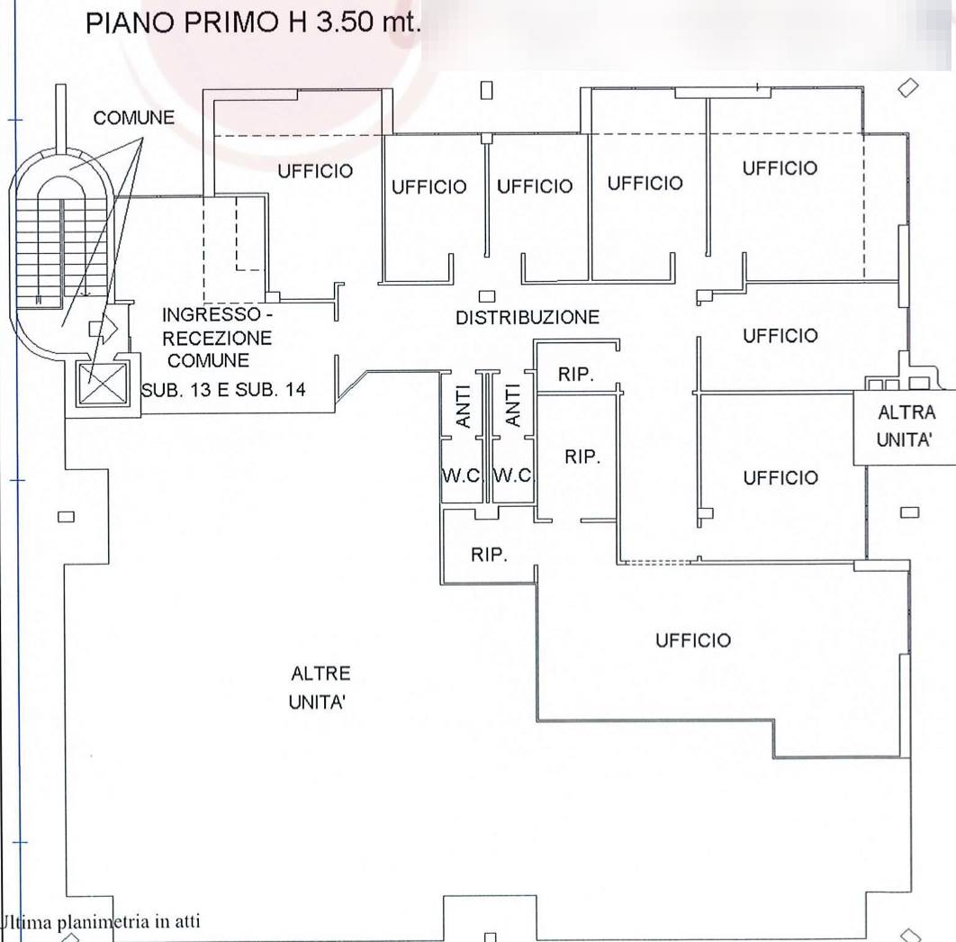 Unità immobiliare ad uso direzionale facente parte del fabbricato condominiale sito in Comune di Rubano (PD), località Sarmeola in via Della Provvidenza consiste in un ufficio al piano primo suddiviso in vari locali mediante pareti mobili attrezzate, due servizi igienici con antibagno e tre ripostigli.
