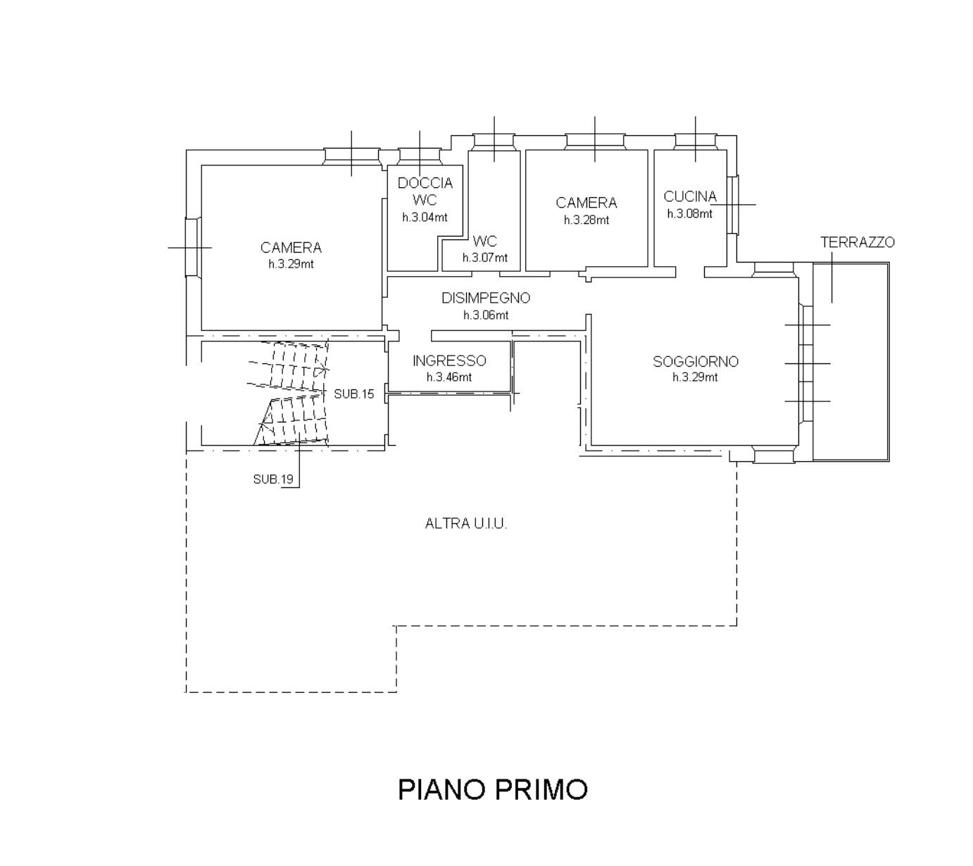 Appartamento al piano primo con magazzino e autorimessa situato a Treviso (TV) in via Terraglio, composto da un ingresso, disimpegno, un soggiorno, una cucina, due camere da letto, due bagni e terrazzo al piano primo; pertinenziali magazzino con ripostiglio, bagno e terrazzo al piano secondo.