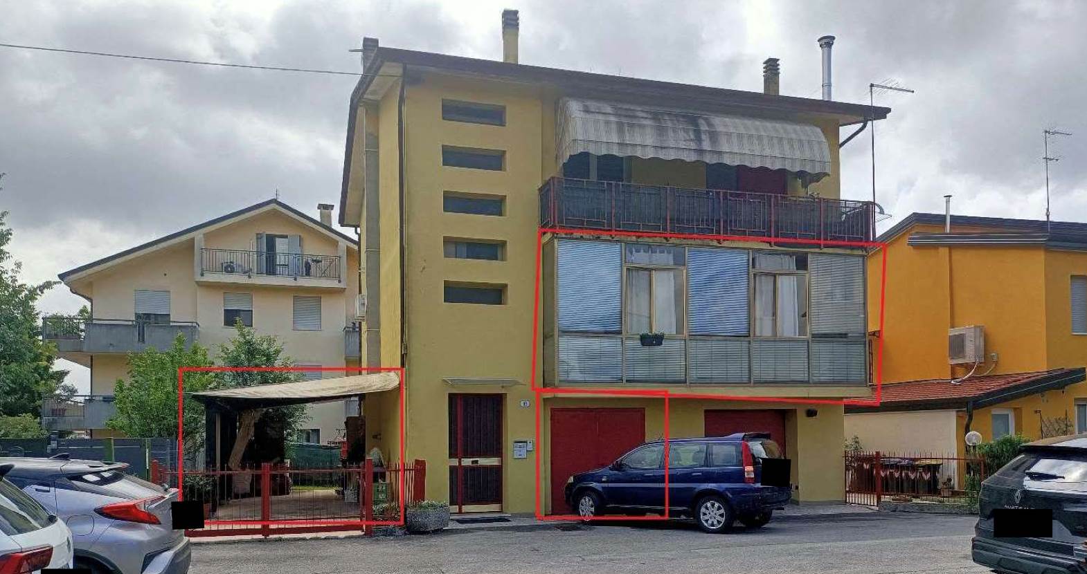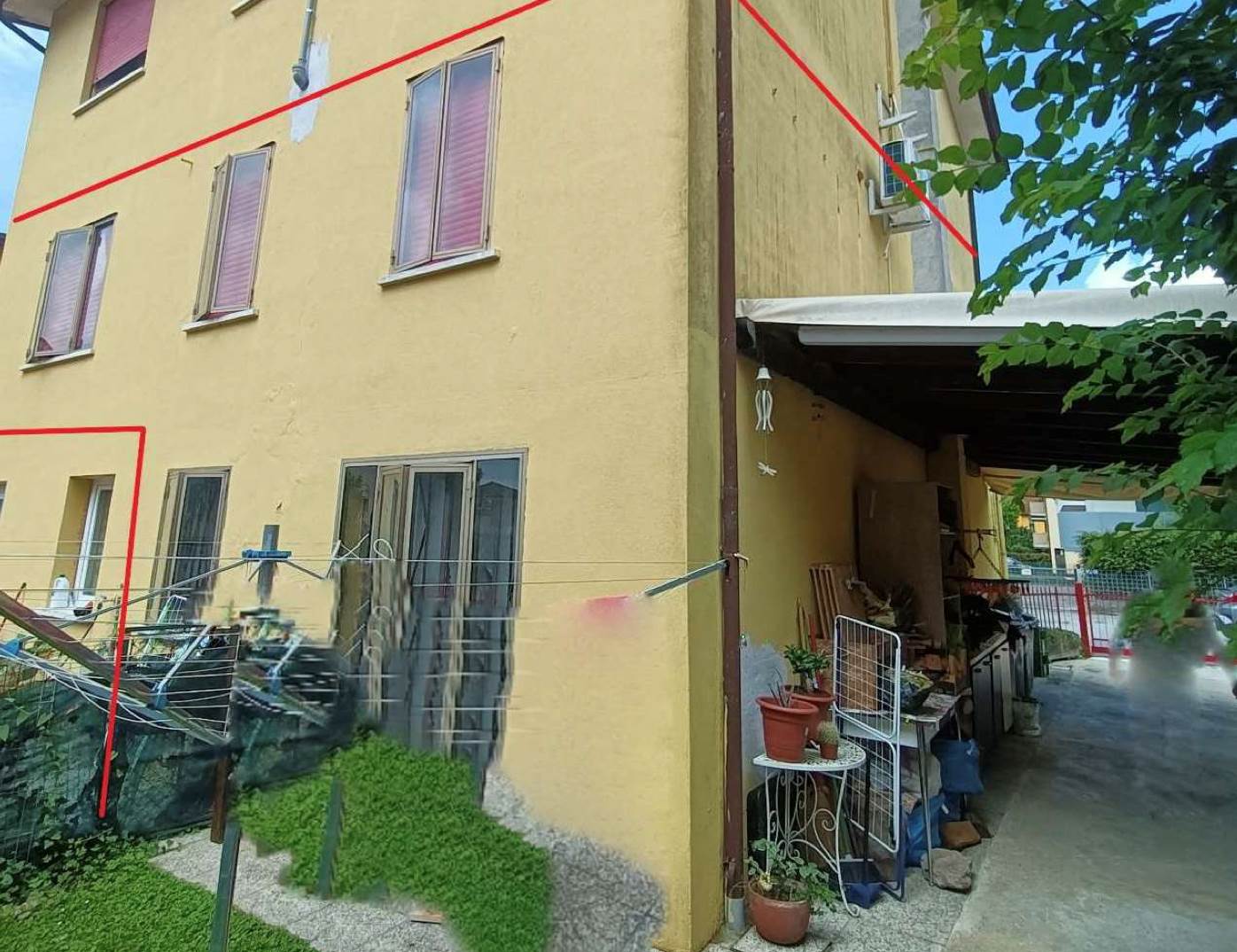 Appartamento al piano primo con annessa autorimessa e scoperto in uso esclusivo situato a Padova (PD) in via Altichiero, composto da un ingresso, una cucina, soggiorno-sala da pranzo, due camere da letto, un bagno, un disimpegno, un poggiolo-veranda e due ripostigli al piano terra, con autorimessa e scoperto in uso esclusivo, sul quale è presente una pergola al piano terra.