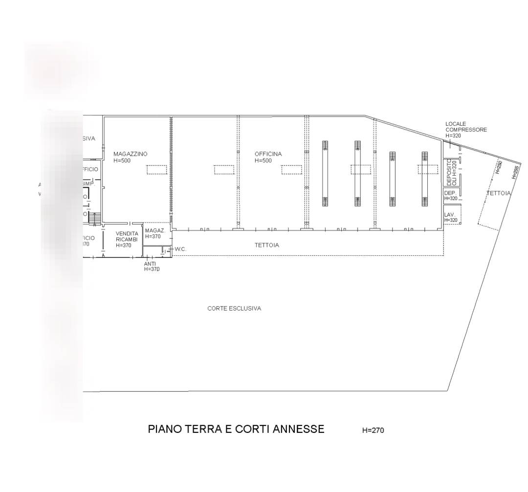 Capannone ad uso magazzino ed officina di circa 1.330 mq con blocco uso uffici di circa 275 mq edificato lungo i confini nord ed ovest del lotto e con spazio esterno di 2.340 mq circa attualmente adibito a parcheggio e spazio di manovra; il tutto situato a Padova (PD) in via Nona Strada.